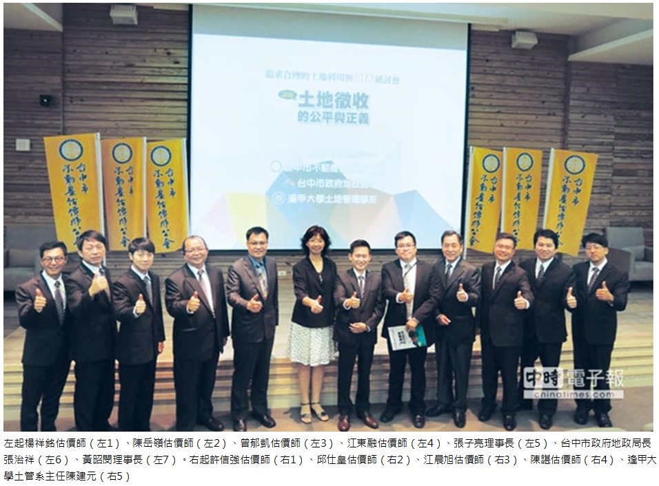 由台中市不動產估價師公會、台中市政府地政局與逢甲大學土地管理學系共同主辦的「土地徵收的公平與正義研討會」,10月17日假逢甲大學盛大舉行。內政部地政司長王靚琇、台中市政府地政局長張治祥與逢甲大學土管系主任陳建元全程參與,產官學齊力探討土地徵收制度。