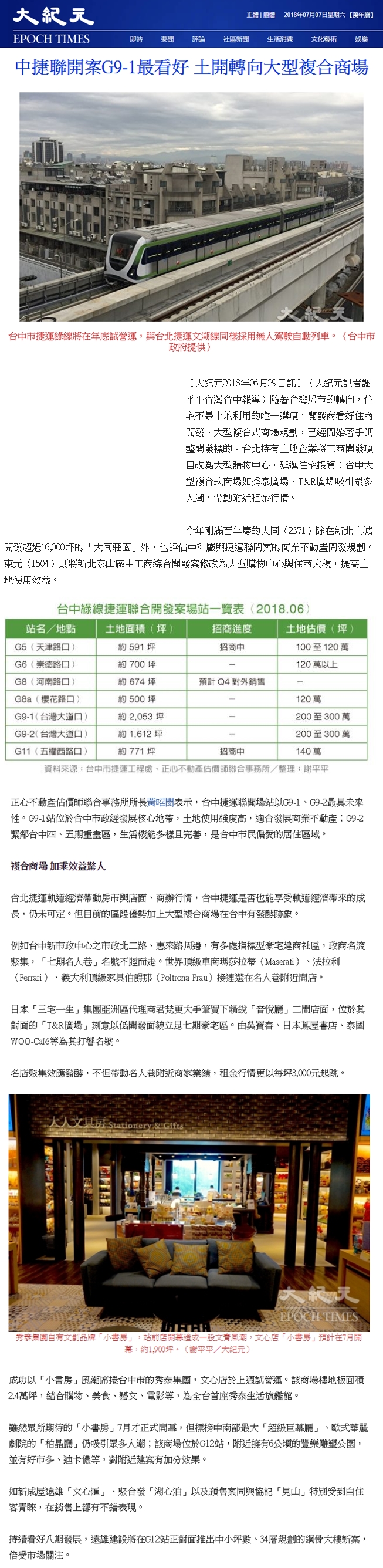 而台中綠線捷運即將在年底試營運,台中市政府規劃聯合開發案共有6站7處,建蔽率均為70%,容積率分為650%(僅G9-1、G9-2)與500%,並已開始進行招商。