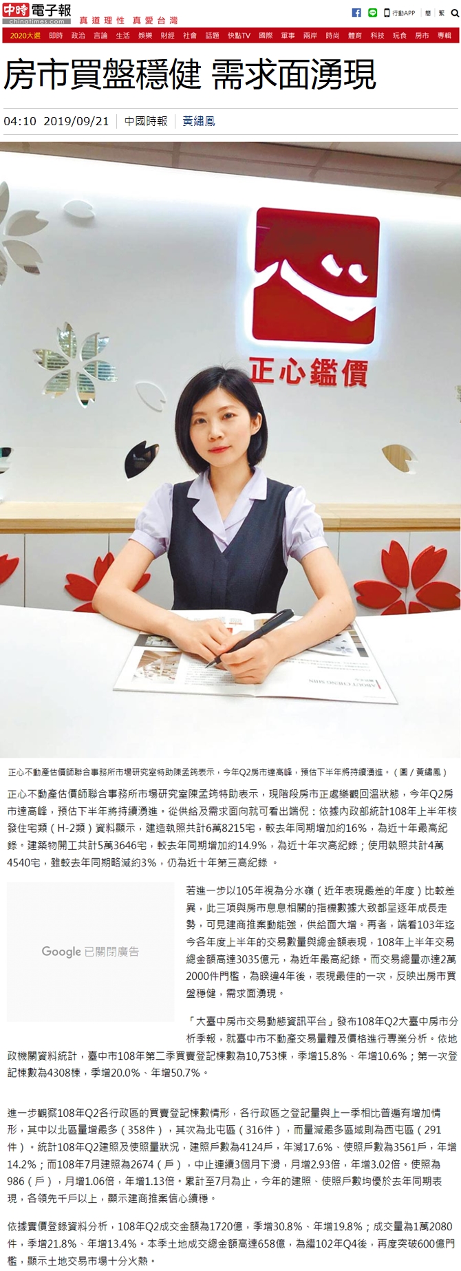 正心不動產估價師聯合事務所市場研究室陳孟筠特助表示,現階段房市正處樂觀回溫狀態,今年Q2房市達高峰,預估下半年將持續湧進。從供給及需求面向就可看出端倪:依據內政部統計108年上半年核發住宅類(H-2類)資料顯示,建造執照共計6萬8215宅,較去年同期增加約16%,為近十年最高紀錄。建築物開工共計5萬3646宅,較去年同期增加約14.9%,為近十年次高紀錄;使用執照共計4萬4540宅,雖較去年同期略減約3%,仍為近十年第三高紀錄 。