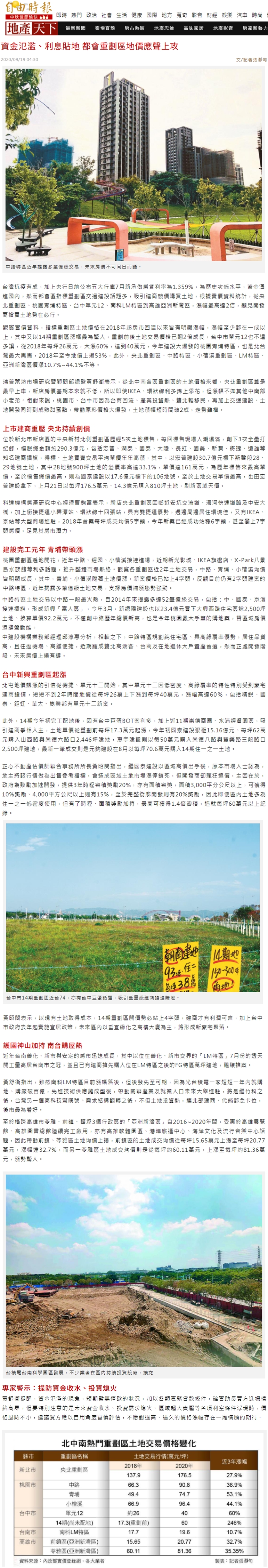 台灣抗疫有成,加上央行日前公布五大行庫7月新承做房貸利率為1.359%,為歷史次低水平,資金湧進國內,然而都會區指標重劃區交通建設話題多,吸引建商競價購買土地,根據實價資料統計,從央北重劃區、桃園青埔特區、台中單元12、南科LM特區到高雄亞洲新灣區,漲幅最高達2倍,顯見開發商搶買土地勢在必行。