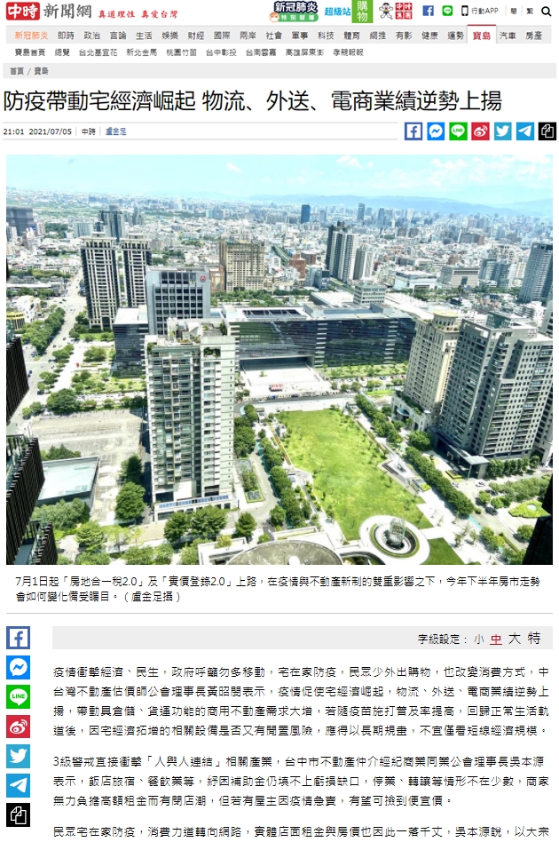 疫情衝擊經濟、民生,政府呼籲勿多移動,宅在家防疫,民眾少外出購物,也改變消費方式,中台灣不動產估價師公會理事長黃昭閔表示,疫情促使宅經濟崛起,物流、外送、電商業績逆勢上揚,帶動具倉儲、貨運功能之商用不動產需求大增,若隨著疫苗施打普及率提高,回歸正常生活軌道後,因宅經濟拓增的相關設備是否又有閒置風險,應得以長期規劃,不宜僅看短線經濟規模。