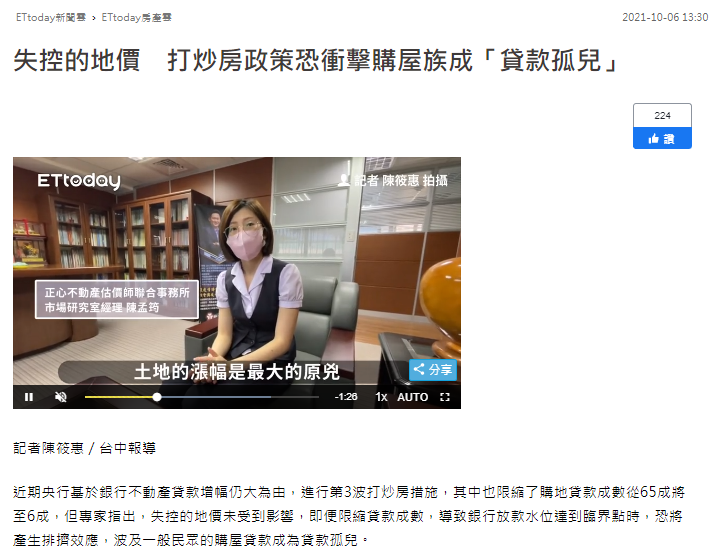 近期央行基於銀行不動產貸款增幅仍大為由,進行第3波打炒房措施,其中也限縮了購地貸款成數從65成將至6成,但專家指出,失控的地價未受到影響,即便限縮貸款成數,導致銀行放款水位達到臨界點時,恐將產生排擠效應,波及一般民眾的購屋貸款成為貸款孤兒。