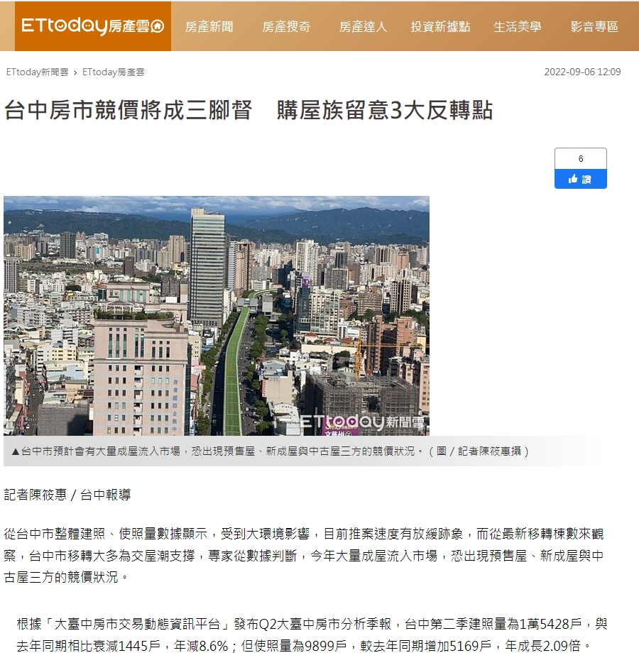 從台中市整體建照、使照量數據顯示,受到大環境影響,目前推案速度有放緩跡象,而從最新移轉棟數來觀察,台中市移轉大多為交屋潮支撐,專家從數據判斷,今年大量成屋流入市場,恐出現預售屋、新成屋與中古屋三方的競價狀況。