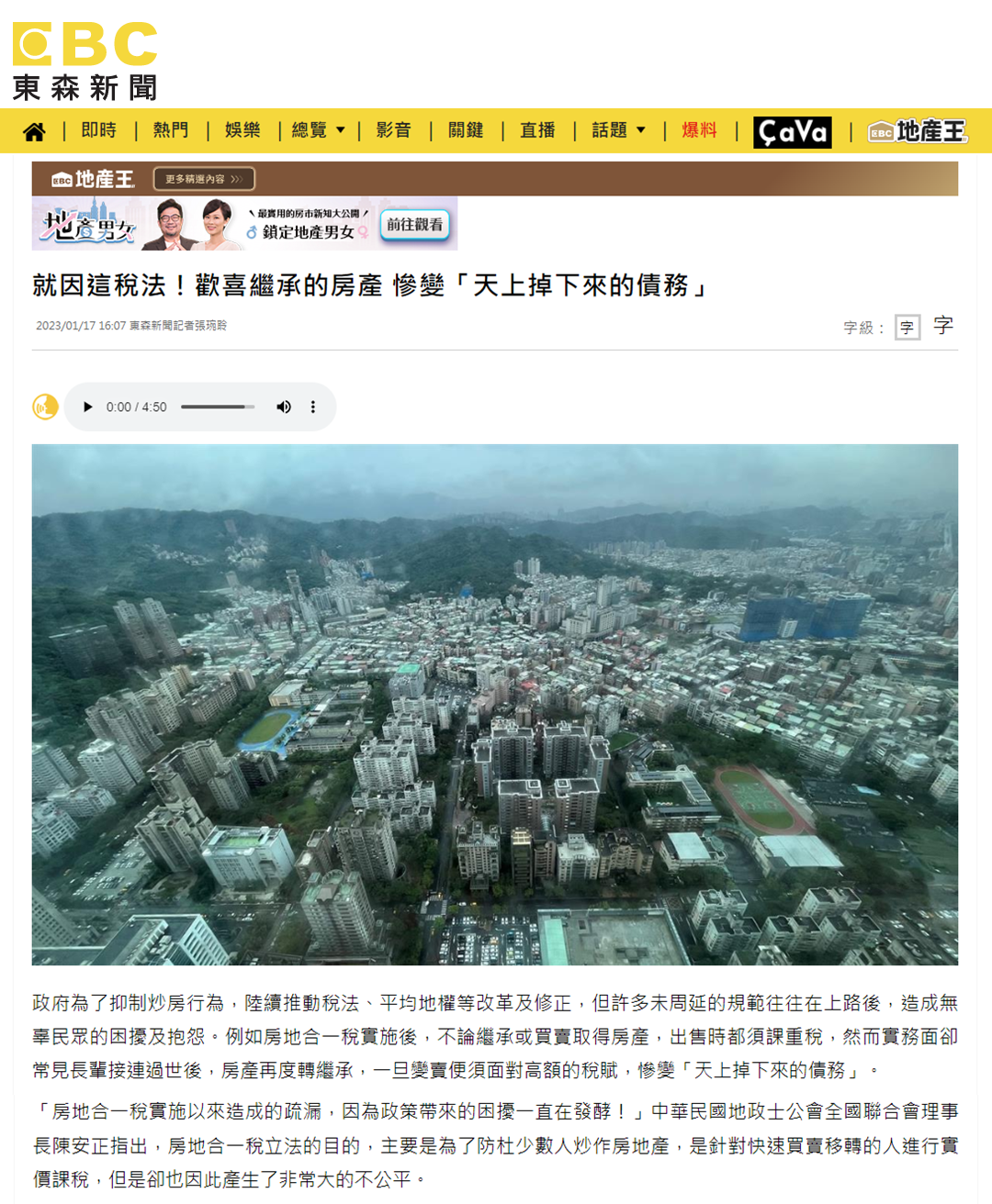 2016年前取得的不動產屬於舊制,土地增值稅不須課所得稅,但2016年後取得的不動產屬於新制,不論是買賣或繼承取得都要用實價課稅,陳安正認為,繼承屬於法律行為,卻要與買賣行為一起負擔此稅賦,本質上已相當不公平。