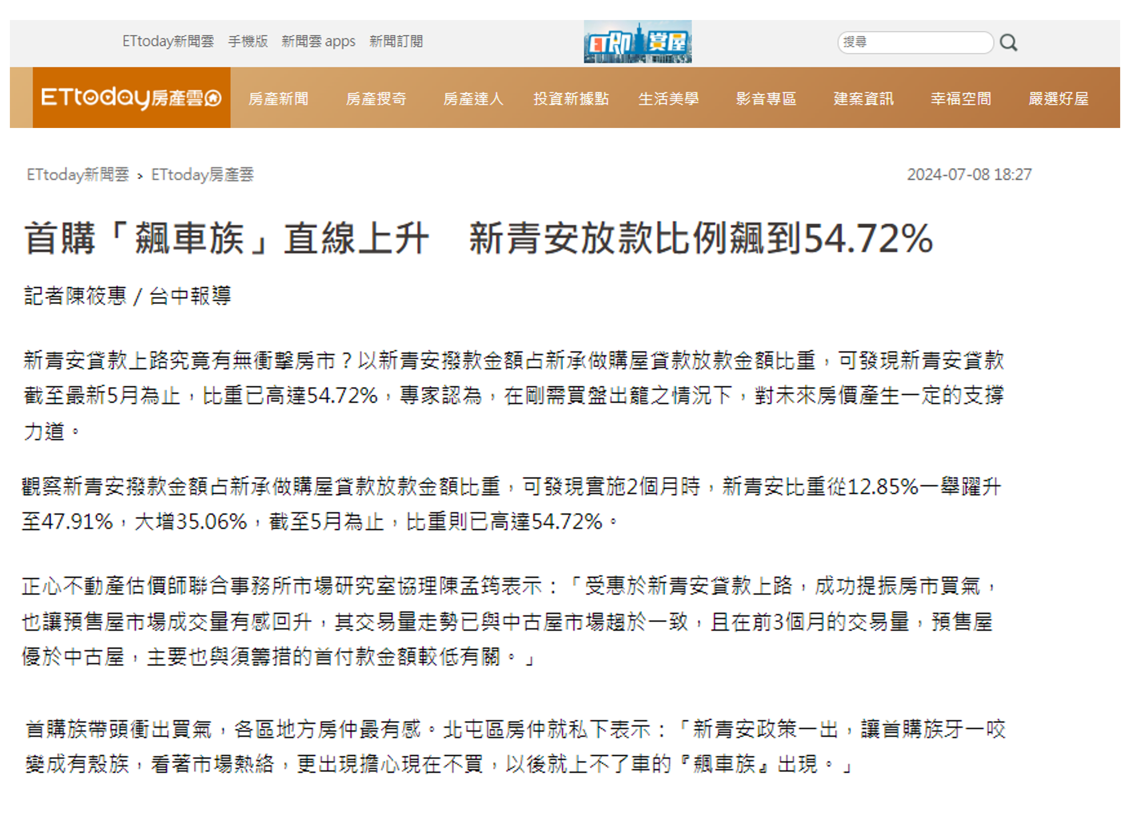 首購族帶頭衝出買氣,各區地方房仲最有感。北屯區房仲就私下表示:「新青安政策一出,讓首購族牙一咬變成有殼族,看著市場熱絡,更出現擔心現在不買,以後就上不了車的『飆車族』出現。」