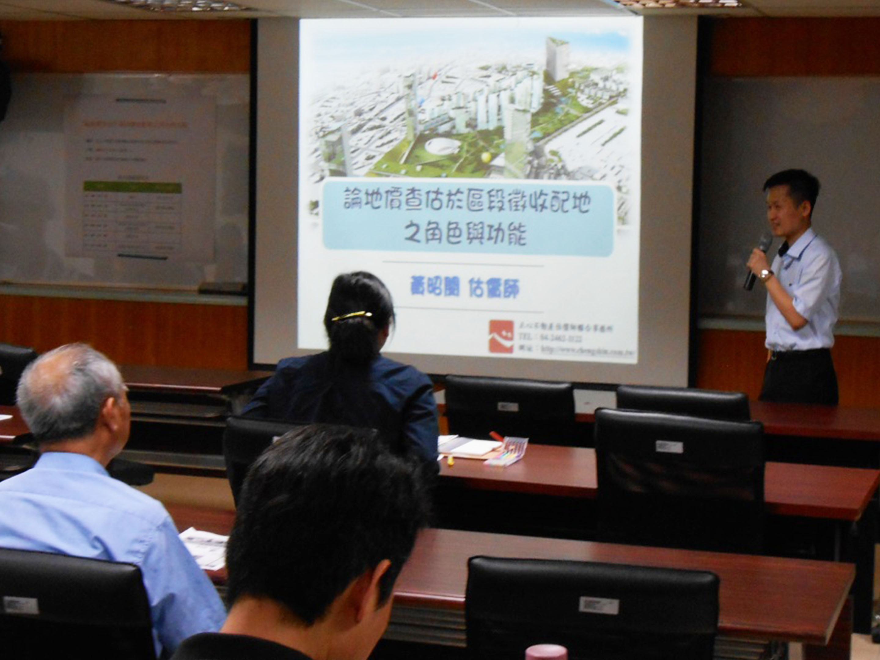 區段徵收與市地重劃皆屬都市計畫的實施工具,兩者細節或有差異,大方向則頗為一致,同時具有公設用地取得、受益者共同負擔、共享開發利益等多重意義,又區段徵收配地係以權利價值而非以面積為基準,公告現值及抵價地面積轉皆須轉換成權利價值,並以區段徵收係數修正評定地價及公告現值的落差。對此,地政人員於區段徵收地價查估過程中所應扮演的角色與功能是?對此,黃昭閔所長受邀至雅潭地政事務所以「論地價查估於區段徵收配地之角色與功能」為題,分別就財務可行性、上漲率、地價查估問題解析等各面向,將實際操作面與土地價格計算之眉角分享予地政同仁。